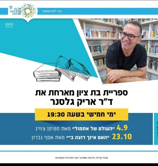 בחמישי זה, ה4.9, בערב, ארצה על האוטוביוגרפיה הקולקטיבית הגדולה, "העולם של אתמול", של שטפן צווייג ביד אליהו בתל אביב (רחוב בת ציון 10).